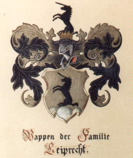 Das Wappen, wie es oben abgebildet ist, ist noch nicht gesichert. Es findet sich jedoch im Besitz fast aller Leiprecht-Linien. Tatsächlich historisch vorkommende Wappen sind das Siegelwappen des Johannes Leiprecht, Hinznang 1773 sowie das Wappen des Johann Anton Leiprecht, Stiftsstadt Kempten 1807/11. Ein Löwe mit einem Ball. An dem Helm ein wachsender Bube mit einem Schwert. Dies ist laut Siebmachers Bürgerlichen Geschlechtern Band 8 Tafel 67 im Jahr 1704 dem Georg Leuprecht zu Aschau in Tirol verliehen worden.